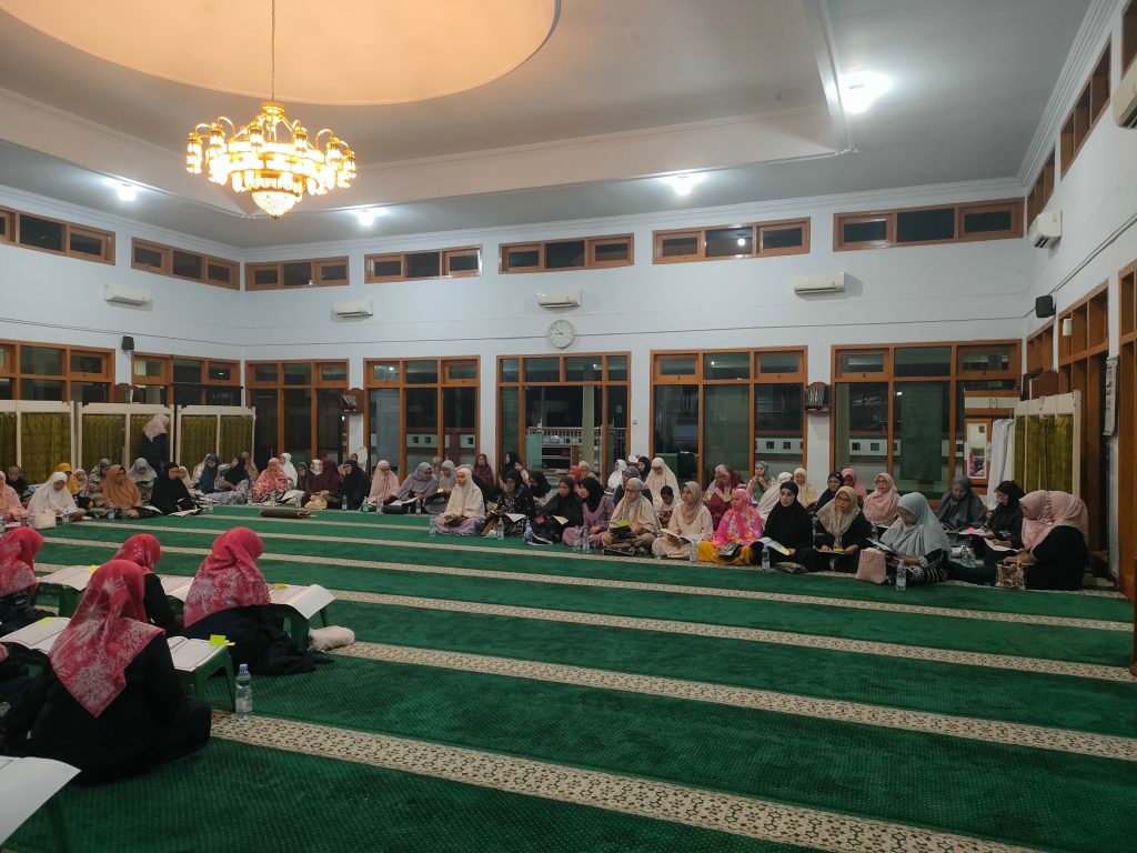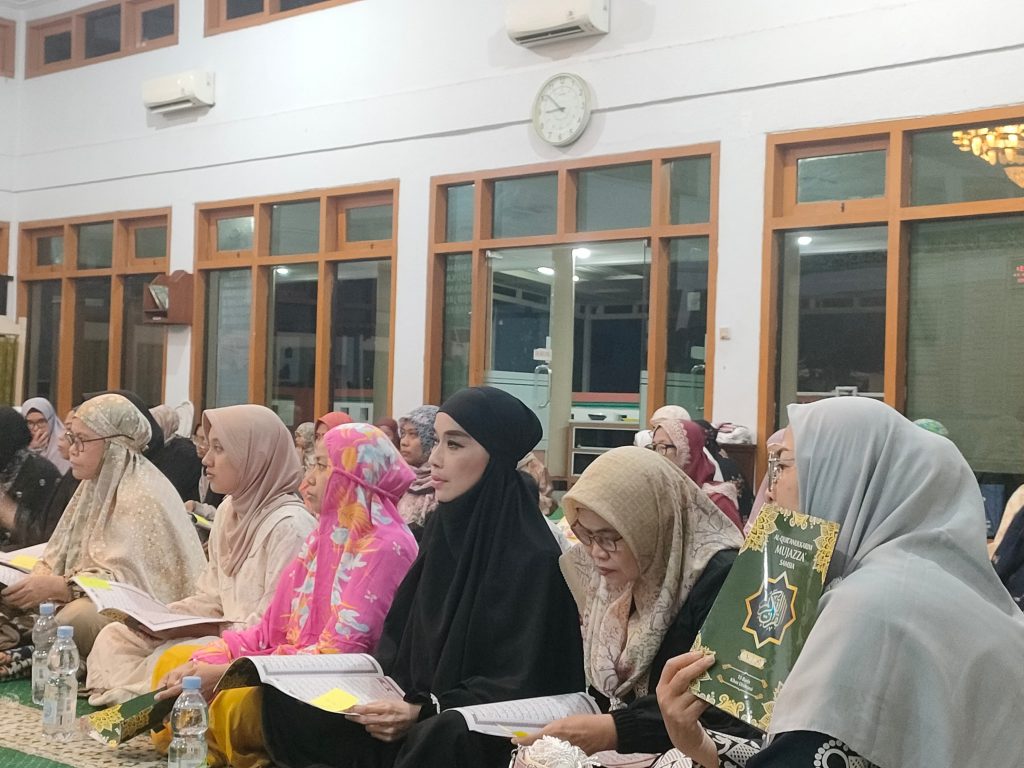 Suasana di Masjid Jami’ Al-Mabrur terasa penuh keberkahan, dengan lantunan ayat suci yang menggema di seluruh ruangan. Para ibu-ibu yang hadir tampak antusias mengikuti rangkaian acara hingga selesai.